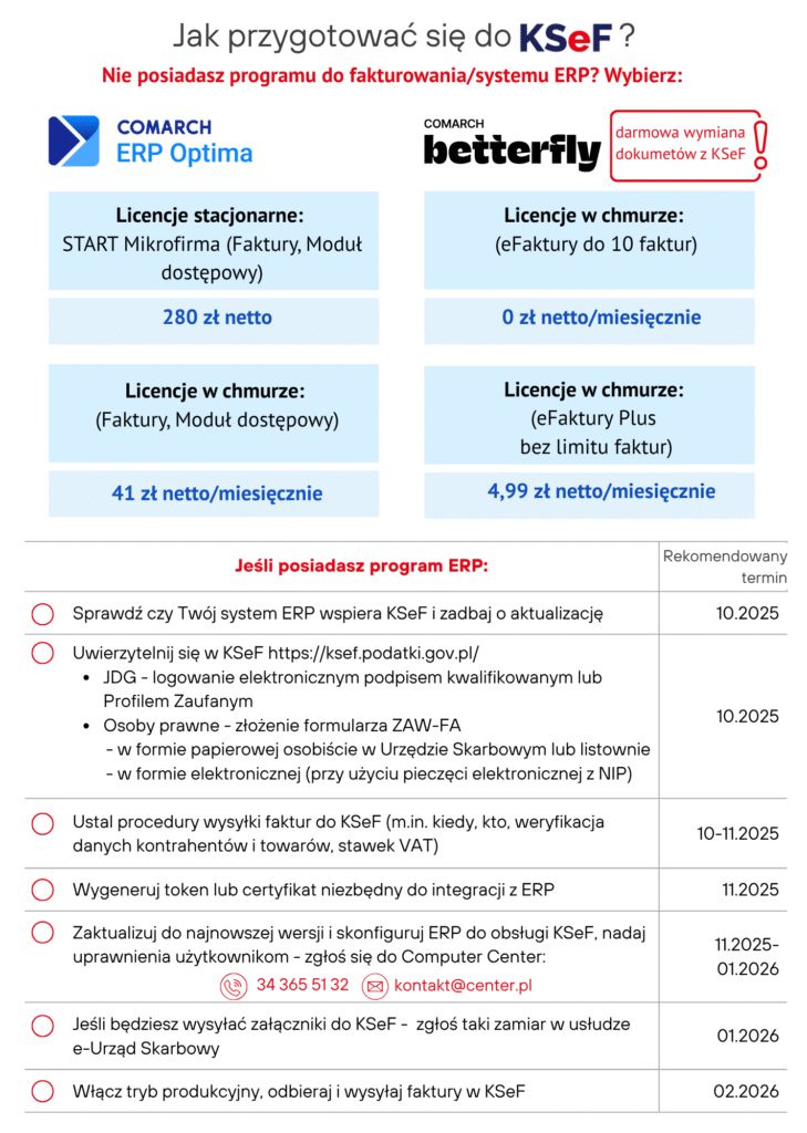 Przygotowanie firmy na KSeF – kontakt z Computer Center