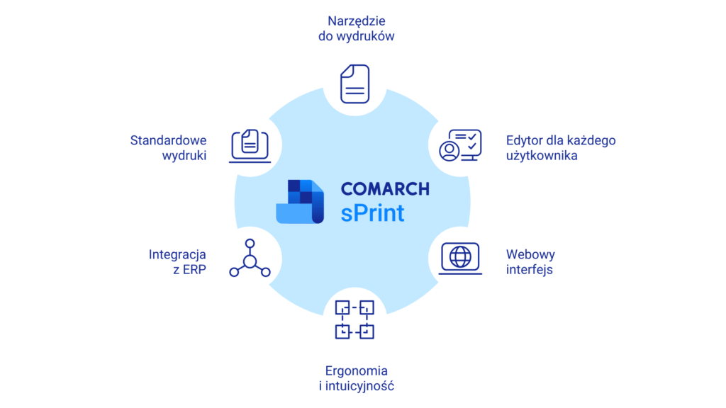 - Standardowe dokumenty w systemach Comarch zostaną automatycznie zastąpione przez wydruki w sPrint.